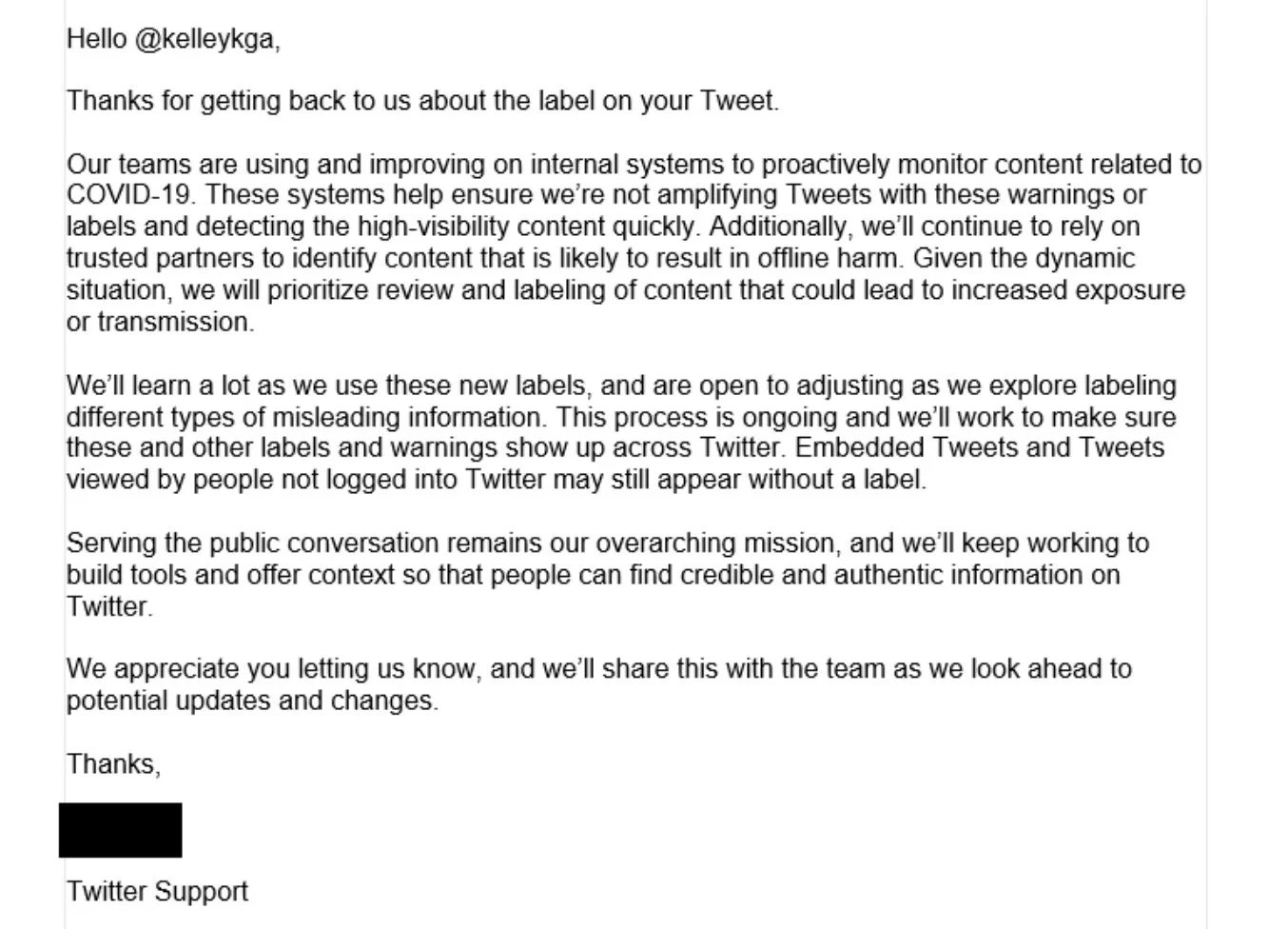 Remember @KelleyKga with the CDC data tweet? Twitter’s response to her in an exchange about why her tweet was labeled as “misleading” is clarifying: