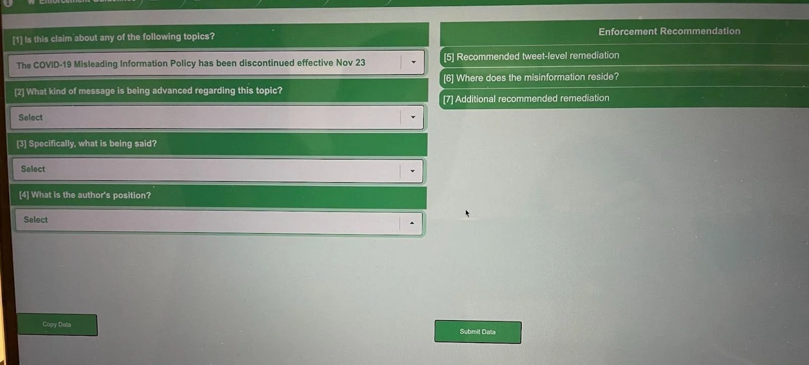 Second: Contractors operating in places like the Philippines were also moderating content. They were given decision trees to aid in their process, but tasking non-experts to adjudicate tweets on complex topics like myocarditis and mask efficacy data was destined for a significant error rate. The notion that remote workers, sitting in distant cube farms, were going to police medical information to this granular degree is absurd on its face.