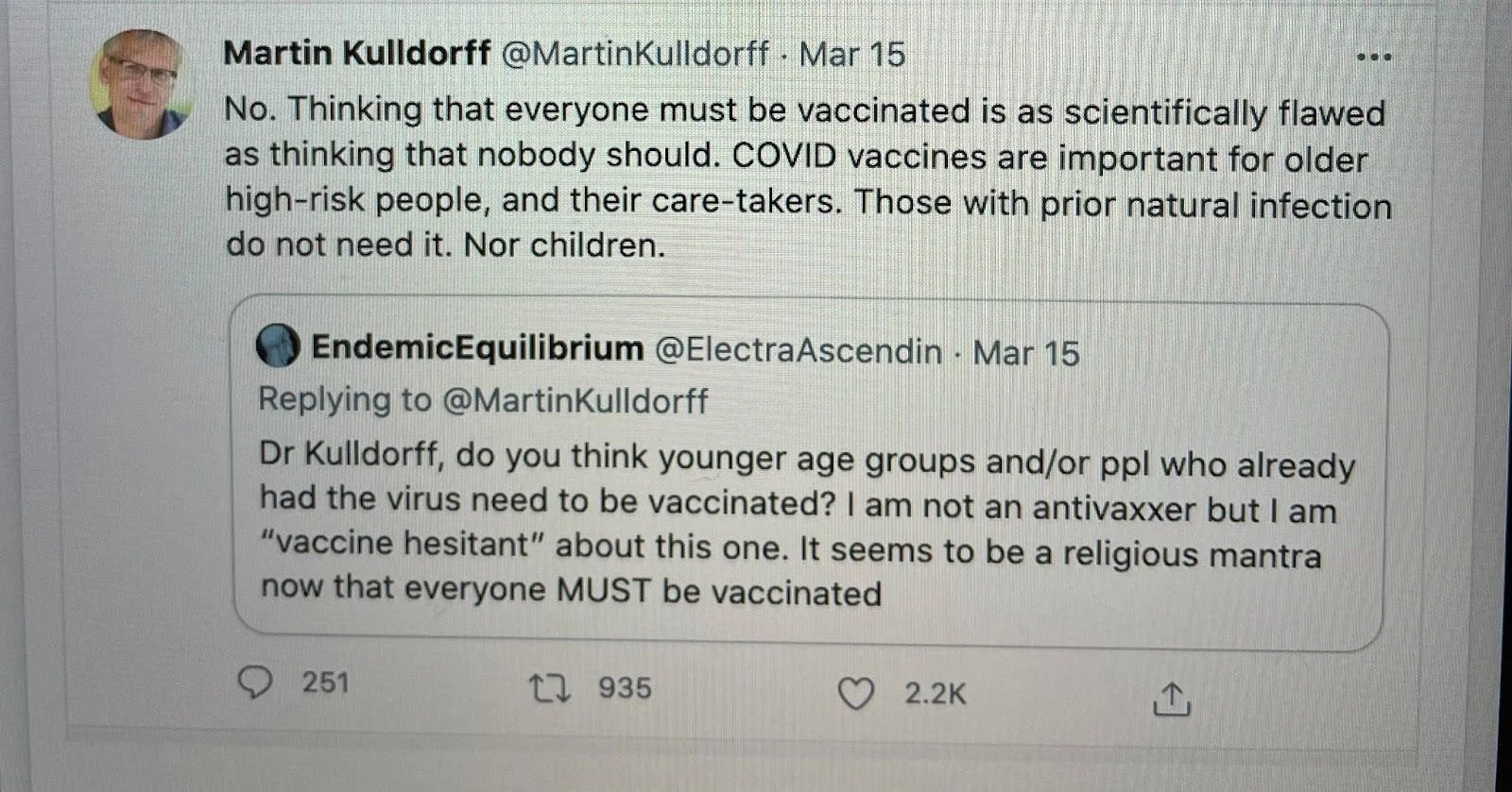 But Kulldorff’s statement was an expert’s opinion—one that happened to be in line with vaccine policies in numerous other countries.